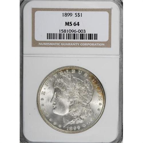 <B>1899 $1 MS64 NGC.</B></I> NGC Census: (2236/575). PCGS Population (2933/1054). Mintage: 330,846. Numismedia Wsl. Price for NGC/PCGS coin in MS64: $400. (#7258)<BR><BR><B>Coin Engraver:</B> George T. Morgan<BR><BR><b>Shipping:</b> Coins & Currency (<a target="_blank" href="http://www.heritageauctions.com/common/shipping.php">view shipping information</a>)