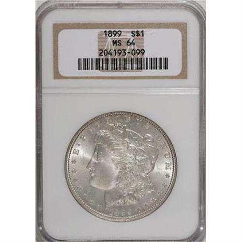 <B>1899 $1 MS64 NGC.</B></I> . NGC Census: (2289/592). PCGS Population (2979/1085). Mintage: 330,846. Numismedia Wsl. Price for NGC/PCGS coin in MS64: $410. (#7258)<BR><BR><B>Coin Engraver:</B> George T. Morgan<BR><BR><b>Shipping:</b> Coins & Currency (<a target="_blank" href="http://www.heritageauctions.com/common/shipping.php">view shipping information</a>)