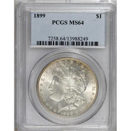 <B>1899 $1 MS64 PCGS.</B></I> PCGS Population (2948/1063). NGC Census: (2258/583). Mintage: 330,846. Numismedia Wsl. Price for NGC/PCGS coin in MS64: $400. (#7258)<BR><BR><B>Coin Engraver:</B> George T. Morgan<BR><BR><b>Shipping:</b> Coins & Currency (<a target="_blank" href="http://www.heritageauctions.com/common/shipping.php">view shipping information</a>)