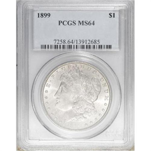 <B>1899 $1 MS64 PCGS.</B></I> PCGS Population (2962/1071). NGC Census: (2277/585). Mintage: 330,846. Numismedia Wsl. Price for NGC/PCGS coin in MS64: $400. (#7258)<BR><BR><B>Coin Engraver:</B> George T. Morgan<BR><BR><b>Shipping:</b> Coins & Currency (<a target="_blank" href="http://www.heritageauctions.com/common/shipping.php">view shipping information</a>)