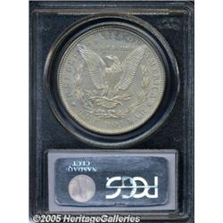 <B>1899<img border='0' src='http://www.heritagecoins.com/images/star.gif' width=10 height=10>$1 MS64 Prooflike PCGS.</B></I> Splotchy light tan patina is most noticeable on the reverse. Lustrous and sharply struck, with just a few minor marks on Liberty's cheek.