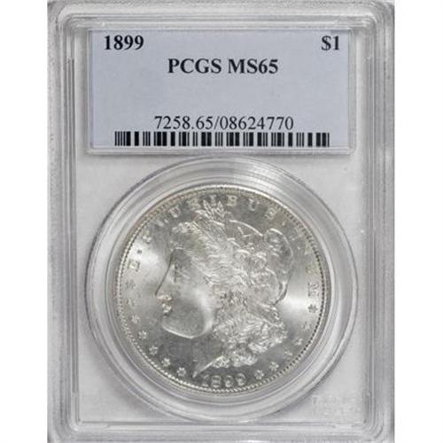 <B>1899 $1 MS65 PCGS.</B></I> Crisply struck and lustrous with pleasing preservation. Brilliant aside from a small darkly toned planchet flaw on the reverse rim at 10:30. A popular low mintage issue.<BR><BR><b>Shipping:</b> Coins & Currency (<a target="_blank" href="http://www.heritageauctions.com/common/shipping.php">view shipping information</a>)