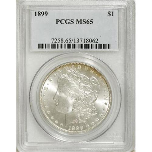 <B>1899 $1 MS65 PCGS.</B></I> Dashes of peach and powder-blue visit this alertly struck and lustrous better date dollar. For an unknown reason, the 1899 Philadelphia silver dollar production was only a fraction of surrounding dates.<BR><BR><B>Coin Engraver:</B> George T. Morgan<BR><BR><b>Shipping:</b> Coins & Currency (<a target="_blank" href="http://www.heritageauctions.com/common/shipping.php">view shipping information</a>)