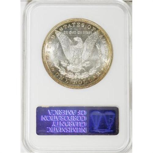 <B>1899 $1 MS65 Prooflike NGC.</B></I> A semi-scarce date that has always been popular because of its low circulation strike mintage of 333,000 pieces. High-grade Prooflike examples are even more desirable. A sharply struck, well preserved coin with reddish-gold peripheral toning that is deeper on the reverse. Census: 19 in 65 Prooflike, 1 finer (7/07).<BR><BR><B>Coin Engraver:</B> George T. Morgan<BR><BR><b>Shipping:</b> Coins & Currency (<a target="_blank" href="http://www.heritageauctions.com/common/shipping.php">view shipping information</a>)