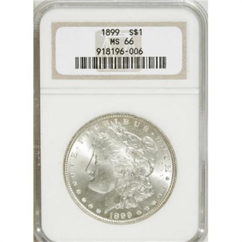 <B>1899 $1 MS66 NGC.</B></I> A bright and lustrous example that is very nearly untoned and features a virtually full strike, save for some of the hairs above Liberty's ear. Just a dusting of patination is noted, and the overall appeal is considerable. Rarely encountered any finer, with NGC grading just two examples MS67 (12/07).<BR><I>From The Motor City Collection.</B></I><BR><BR><B>Coin Engraver:</B> George T. Morgan<BR><BR><b>Shipping:</b> Coins & Currency (<a target="_blank" href="http://www.heritageauctions.com/common/shipping.php">view shipping information</a>)