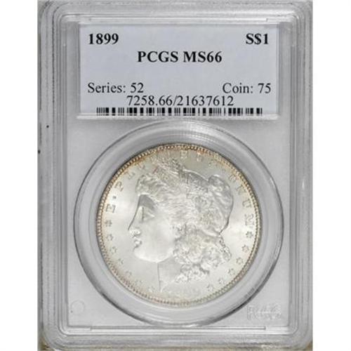 <B>1899 $1 MS66 PCGS. CAC.</B></I> A well executed strike brings about strong definition on the design elements, including the hair at Liberty's ear and the eagle's breast feathers. Silver-gray surfaces display pleasing luster and no mentionable marks. <BR><BR><B>Coin Engraver:</B> George T. Morgan<BR><BR><b>Shipping:</b> Coins & Currency (<a target="_blank" href="http://www.heritageauctions.com/common/shipping.php">view shipping information</a>)