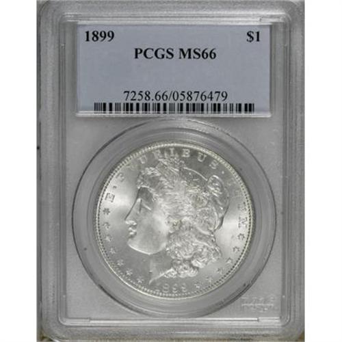 <B>1899 $1 MS66 PCGS.</B></I> Strongly lustrous and minimally toned, a wonderful Premium Gem example of this Philadelphia issue. Excellent eye appeal and quality. PCGS has certified 16 finer pieces (1/08).<BR><BR><B>Coin Engraver:</B> George T. Morgan<BR><BR><b>Shipping:</b> Coins & Currency (<a target="_blank" href="http://www.heritageauctions.com/common/shipping.php">view shipping information</a>)