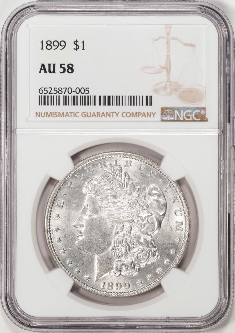 One 1899 $1 Morgan Silver Dollar Coin NGC AU58. NGC Certified.