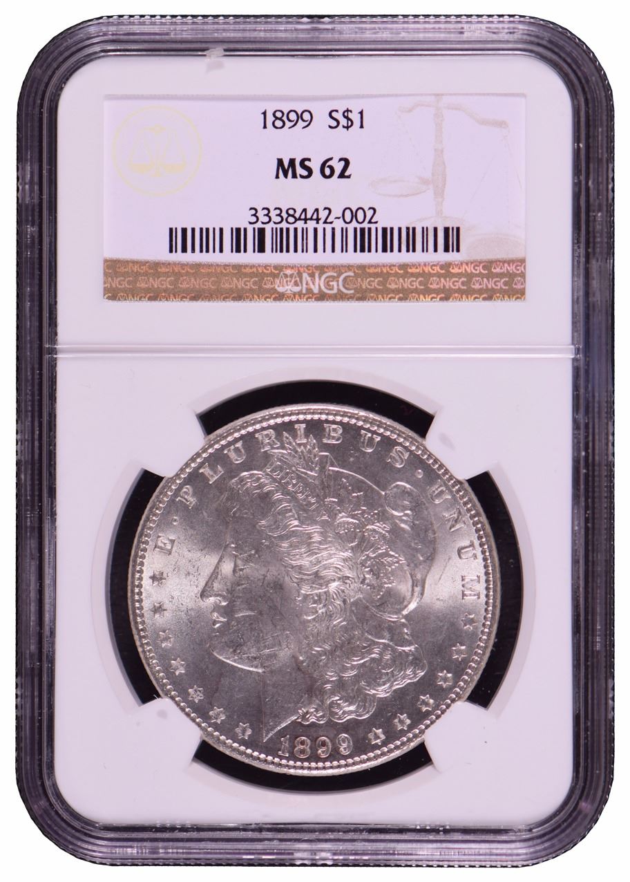 One 1899 $1 Morgan Silver Dollar Coin NGC MS62.