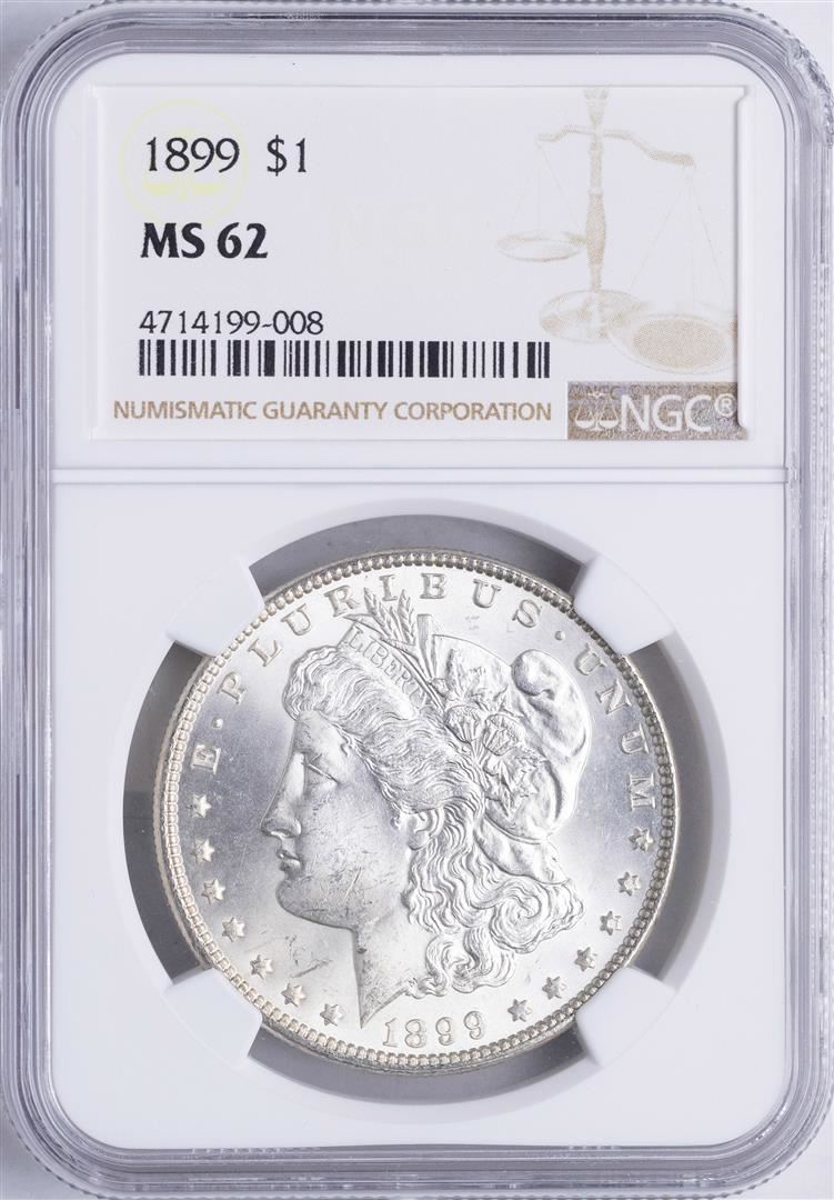One 1899 $1 Morgan Silver Dollar Coin NGC MS62. NGC Certified.
