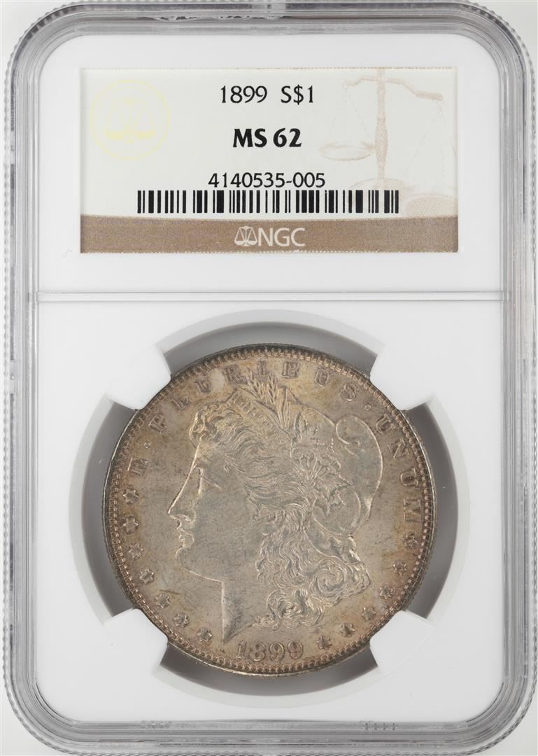 One 1899 $1 Morgan Silver Dollar Coin NGC MS62. NGC Certified.