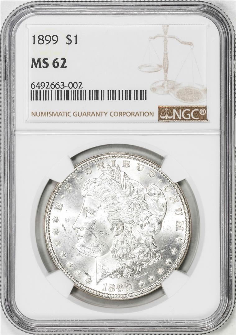 One 1899 $1 Morgan Silver Dollar Coin NGC MS62. NGC Certified.