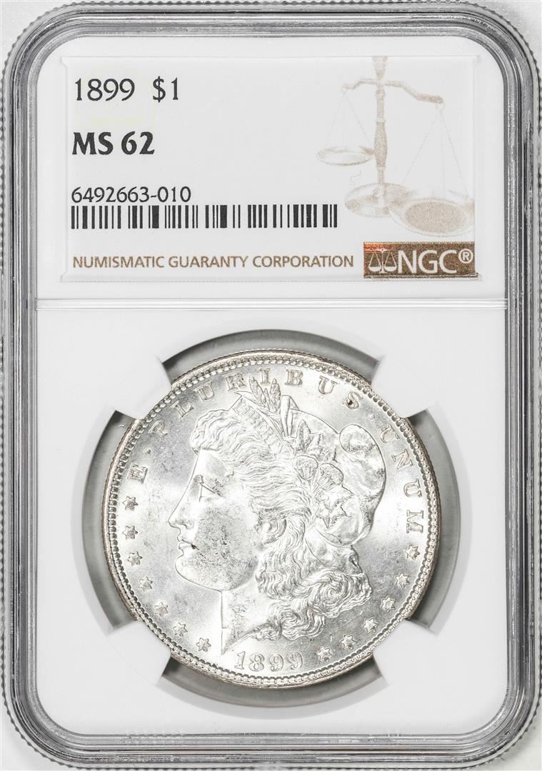 One 1899 $1 Morgan Silver Dollar Coin NGC MS62. NGC Certified.