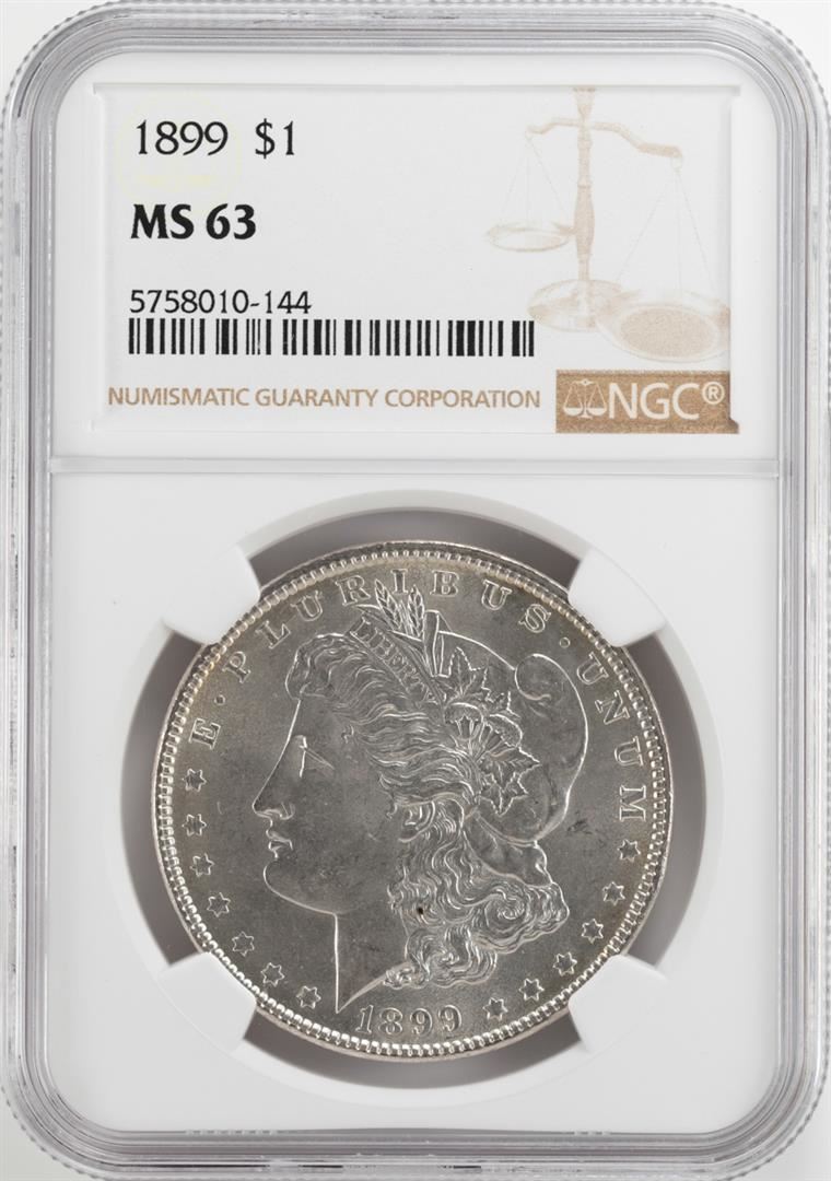 One 1899 $1 Morgan Silver Dollar Coin NGC MS63. NGC Certified.