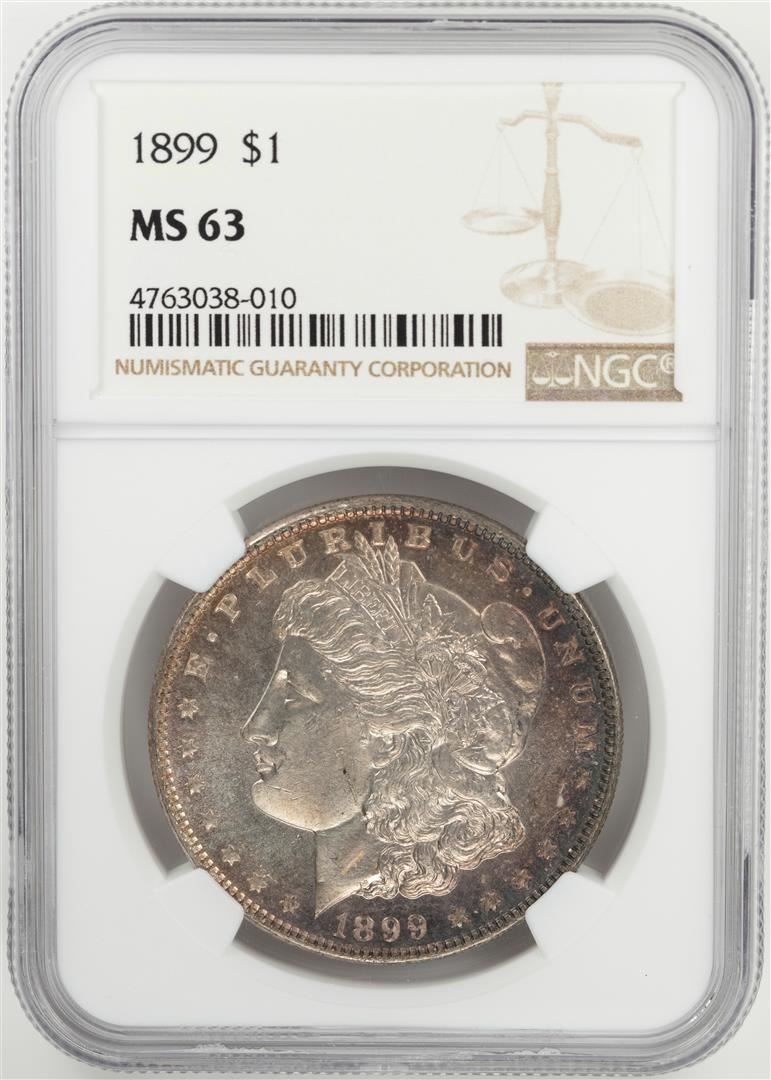 One 1899 $1 Morgan Silver Dollar Coin NGC MS63. NGC Certified.