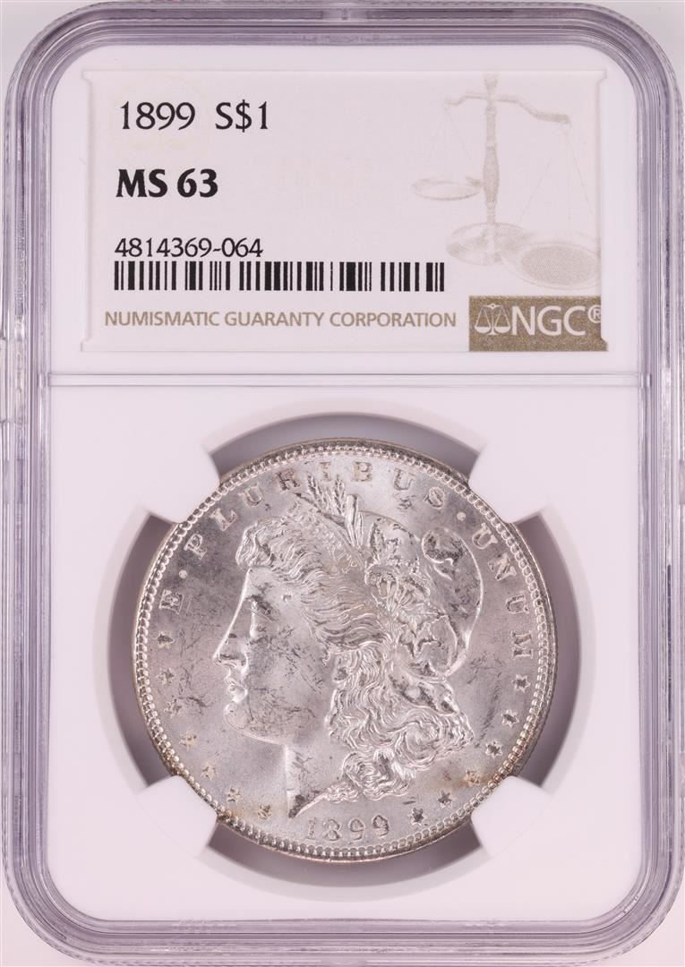 One 1899 $1 Morgan Silver Dollar Coin NGC MS63. NGC Certified.