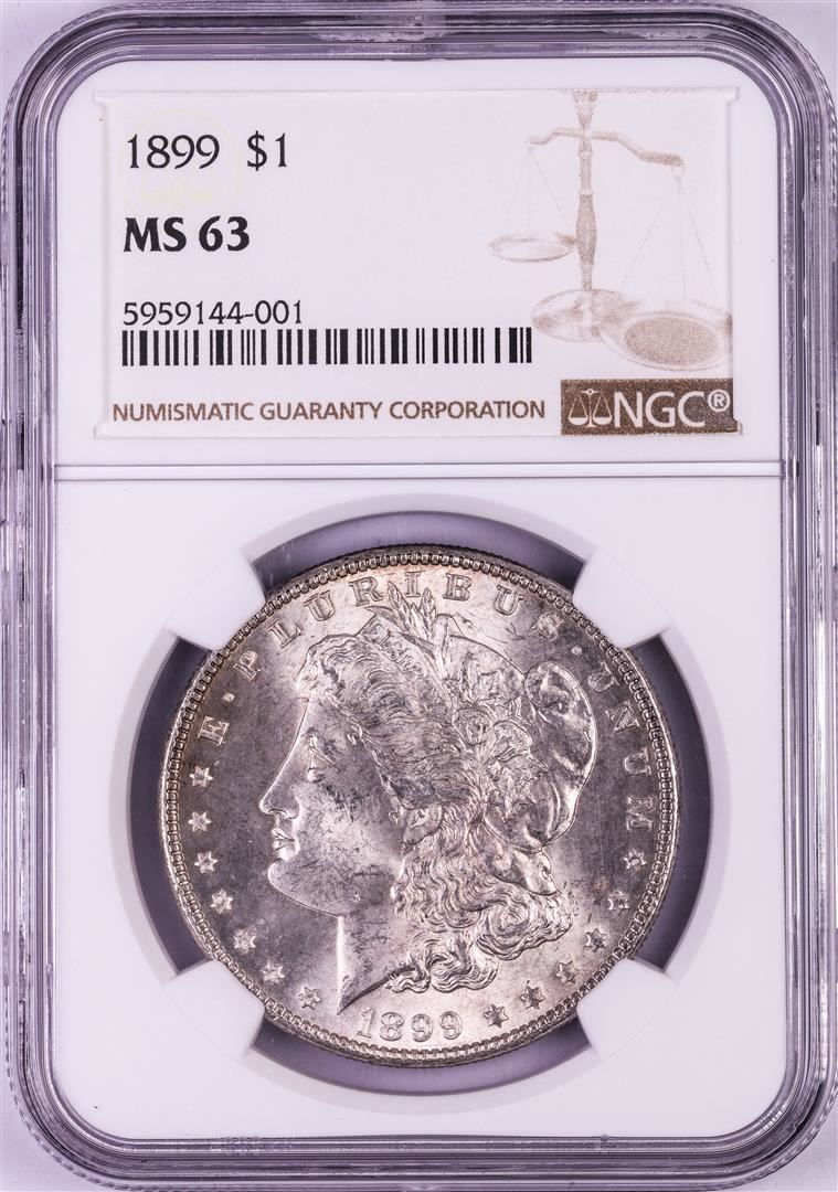 One 1899 $1 Morgan Silver Dollar Coin NGC MS63. NGC Certified.