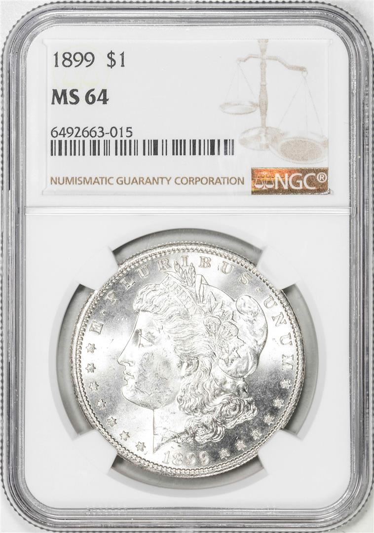 One 1899 $1 Morgan Silver Dollar Coin NGC MS64. NGC Certified.