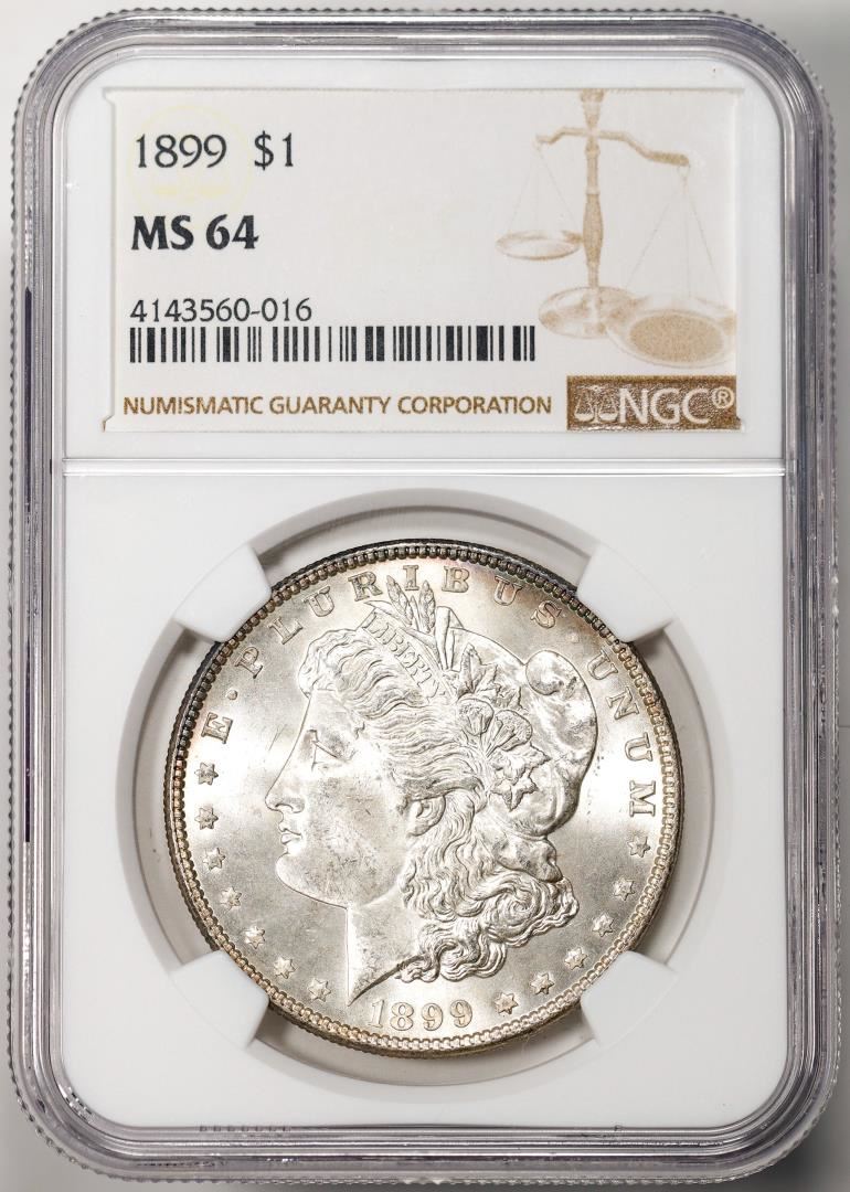 One 1899 $1 Morgan Silver Dollar Coin NGC MS64. NGC Certified.