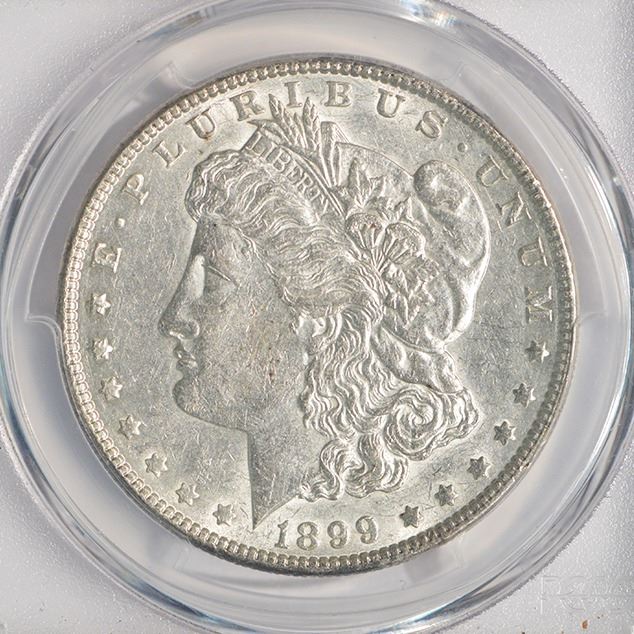 One 1899 $1 Morgan Silver Dollar Coin PCGS AU-50.