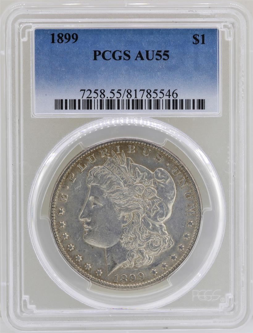 One 1899 $1 Morgan Silver Dollar Coin PCGS AU55. PCGS Graded.
