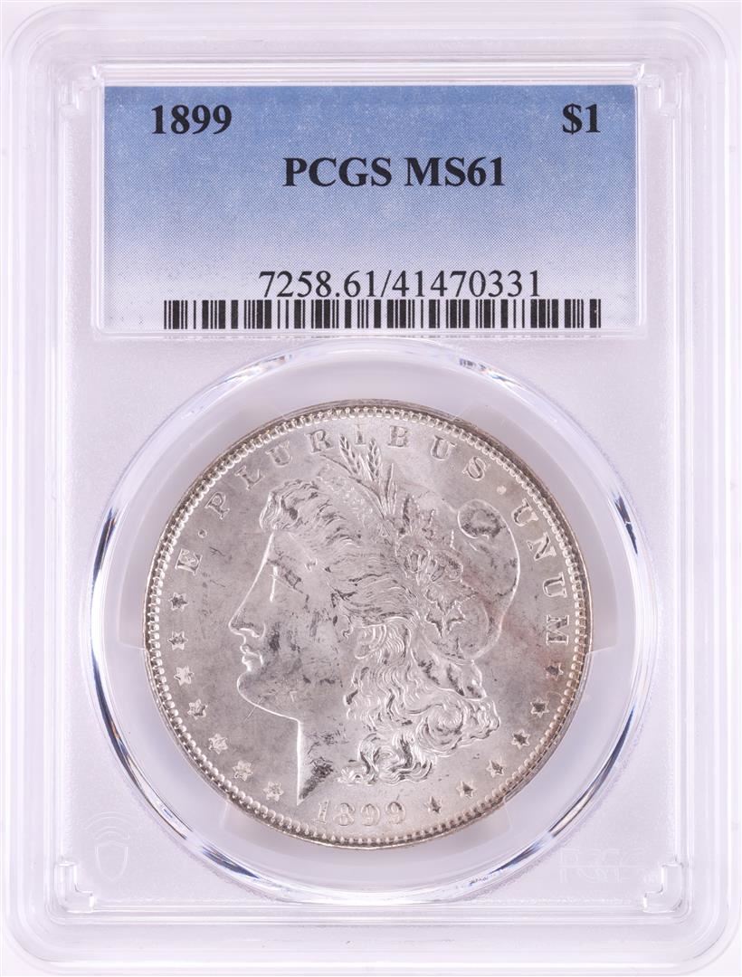 One 1899 $1 Morgan Silver Dollar Coin PCGS MS61.