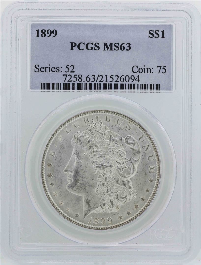 One 1899 $1 Morgan Silver Dollar Coin PCGS MS63. PCGS Graded.
