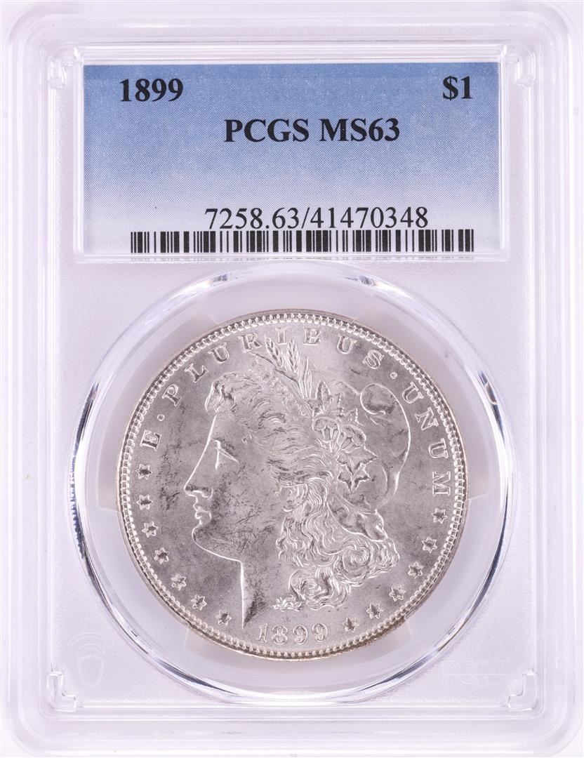 One 1899 $1 Morgan Silver Dollar Coin PCGS MS63.