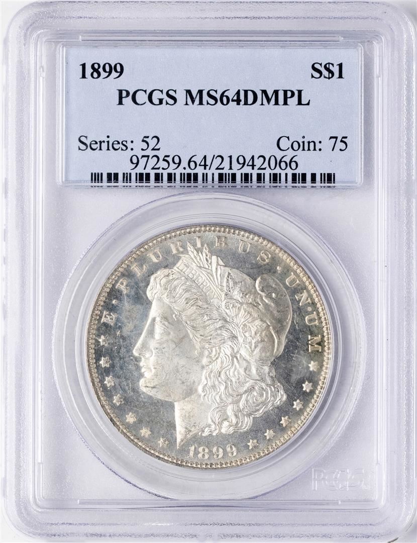 One 1899 $1 Morgan Silver Dollar Coin PCGS MS64DMPL. PCGS Graded.