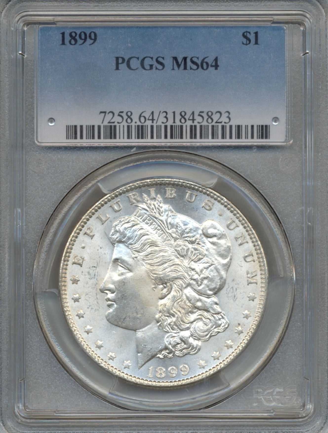 One 1899 $1 Morgan Silver Dollar Coin PCGS MS64.