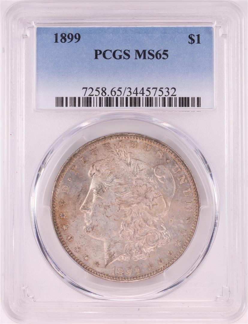 One 1899 $1 Morgan Silver Dollar Coin PCGS MS65. PCGS Graded.