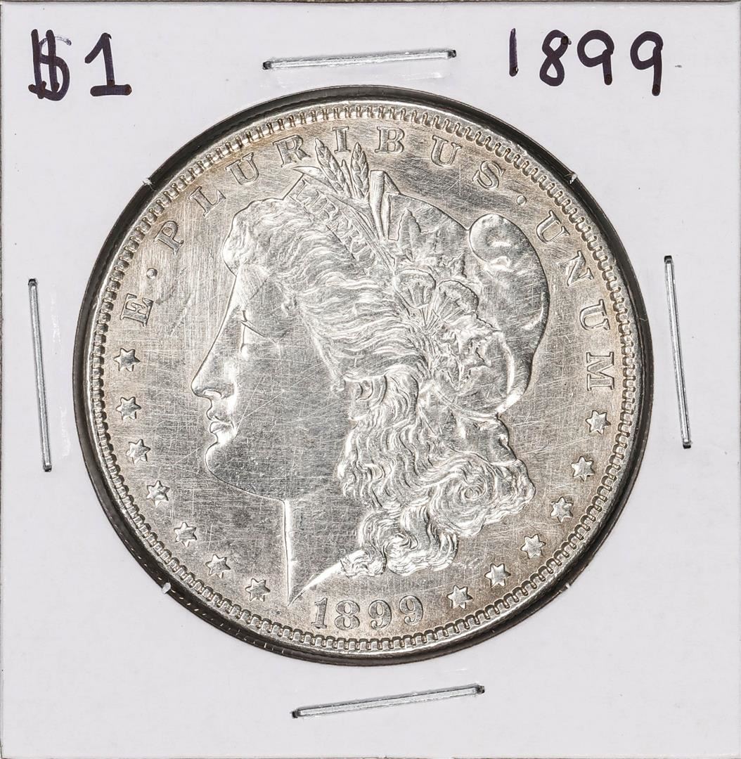 One 1899 $1 Morgan Silver Dollar Coin.