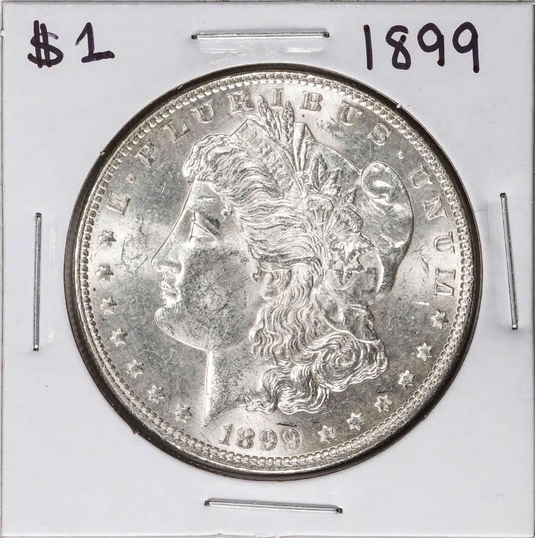 One 1899 $1 Morgan Silver Dollar Coin.