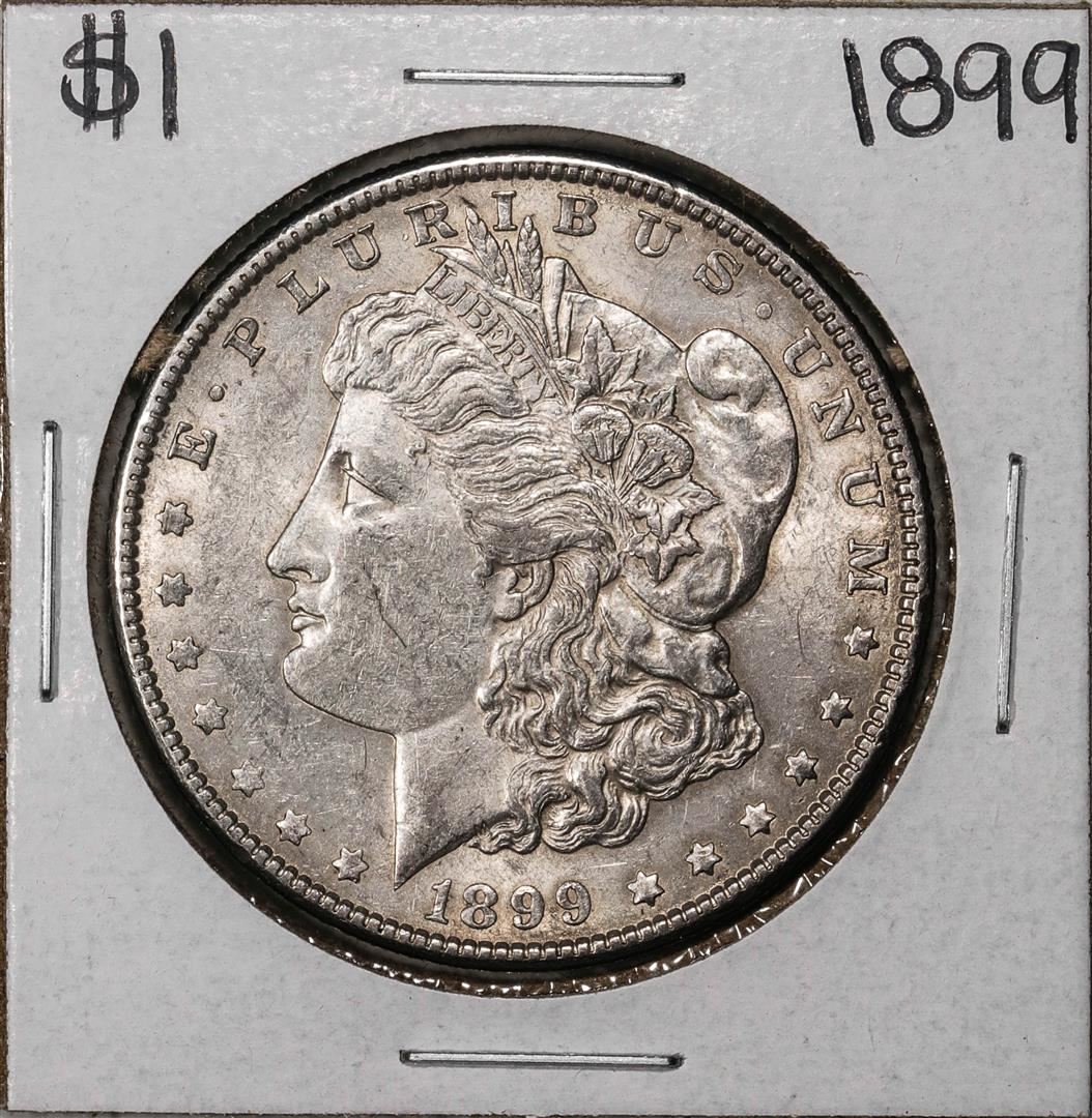 One 1899 $1 Morgan Silver Dollar Coin.