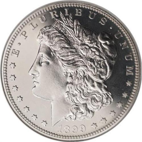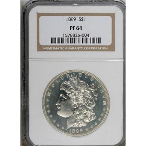 <B>1899 $1 PR64 NGC.</B></I> A hint of gold toning denies absolute brilliance, but the strike is razor-sharp. The reverse exhibits significant white-on-black contrast, as does Liberty's cap and hair. Even the cheek and neck provides mild contrast with the fields, although apparently insufficient in degree to secure a Cameo designation. Trivial slide marks on the portrait preclude a finer grade.<BR><BR><B>Coin Engraver:</B> George T. Morgan<BR><BR><b>Shipping:</b> Coins & Currency (<a target="_blank" href="http://www.heritageauctions.com/common/shipping.php">view shipping information</a>)
