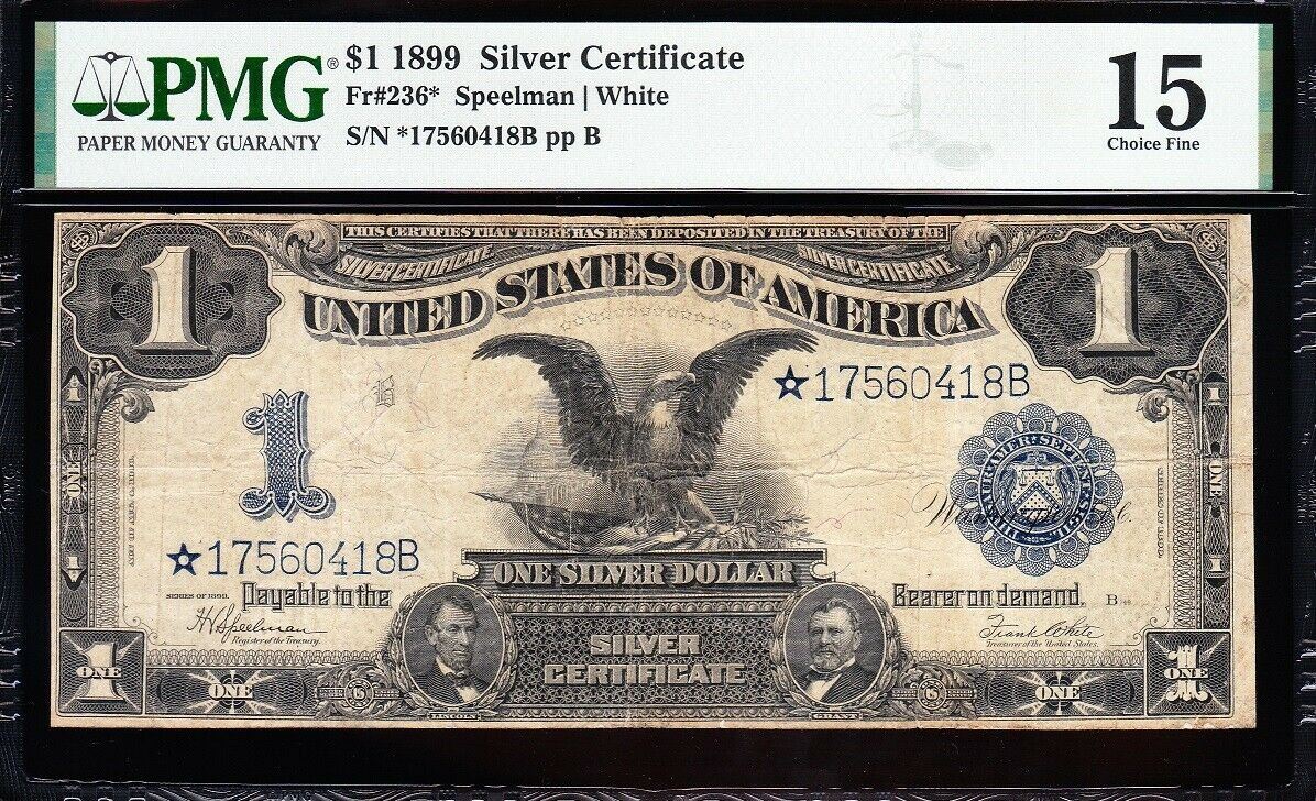 One 1899 $1 STAR Black Eagle Silver Cert PMG 15.