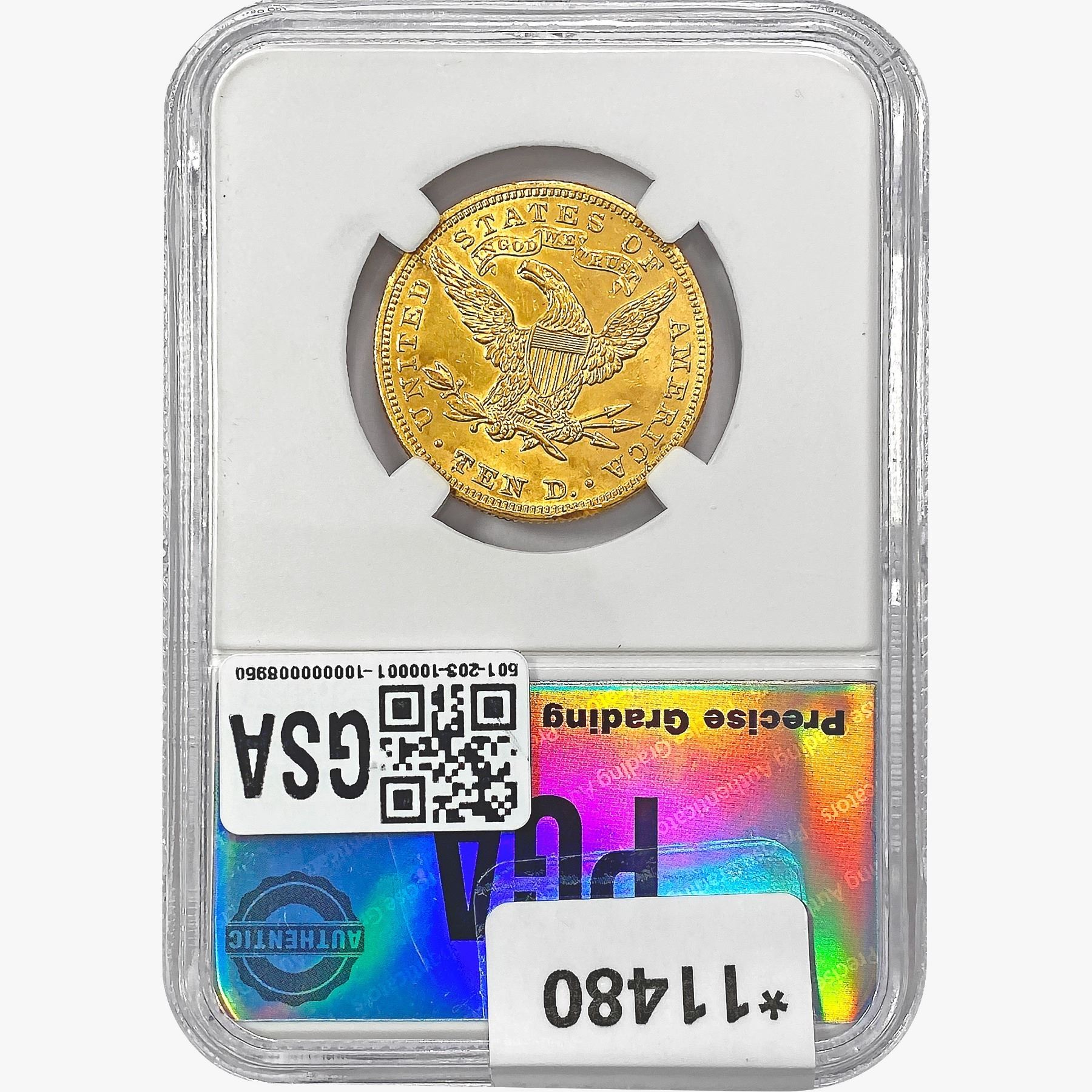 e. Coins sold referencing a third-party grading service are sold “AS IS” without any express or implied warranty, except for a guarantee by GSA that they are genuine. Removal or alteration of the holder, voids all of Bidder’s claims concerning that Product. Certain warranties may be available from the grading services and Bidders are referred to them for further details: Numismatic Guaranty Corporation (NGC), PO Box 4776, Sarasota, FL 34230, www.ngccoin.com/services/writtenguarantee.asp; Professional Coin Grading Services (PCGS), PO Box 9458, Newport Beach, CA 92658, www.pcgs.com/guarantee.html; ANACS, 6555 S. Kenton St., Ste. 303, Englewood, CO 80111; and Independent Coin Grading Co. (ICG), 7901 East Bellview, Ave., Suite 50, Englewood, CO 80111.