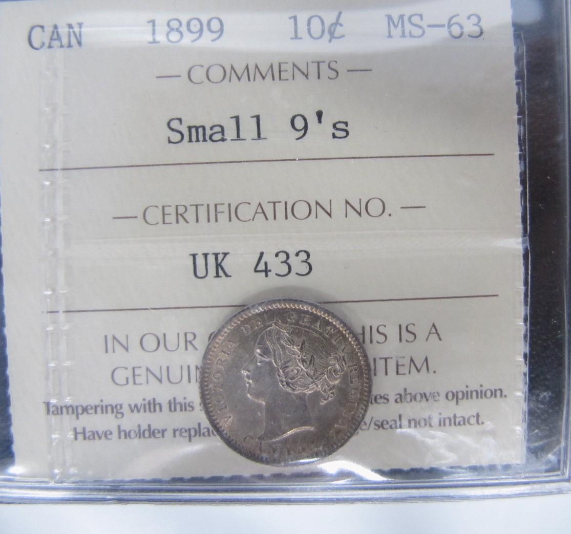 1899 10¢ ICCS Sml 9's MS63. Golden shades.