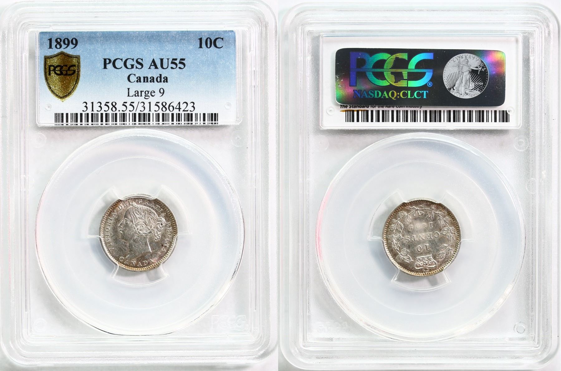 1899 10¢ "Large 9's" PCGS Choice About Uncirculated-55 Brilliant and lustrous with a touch of golden tone.