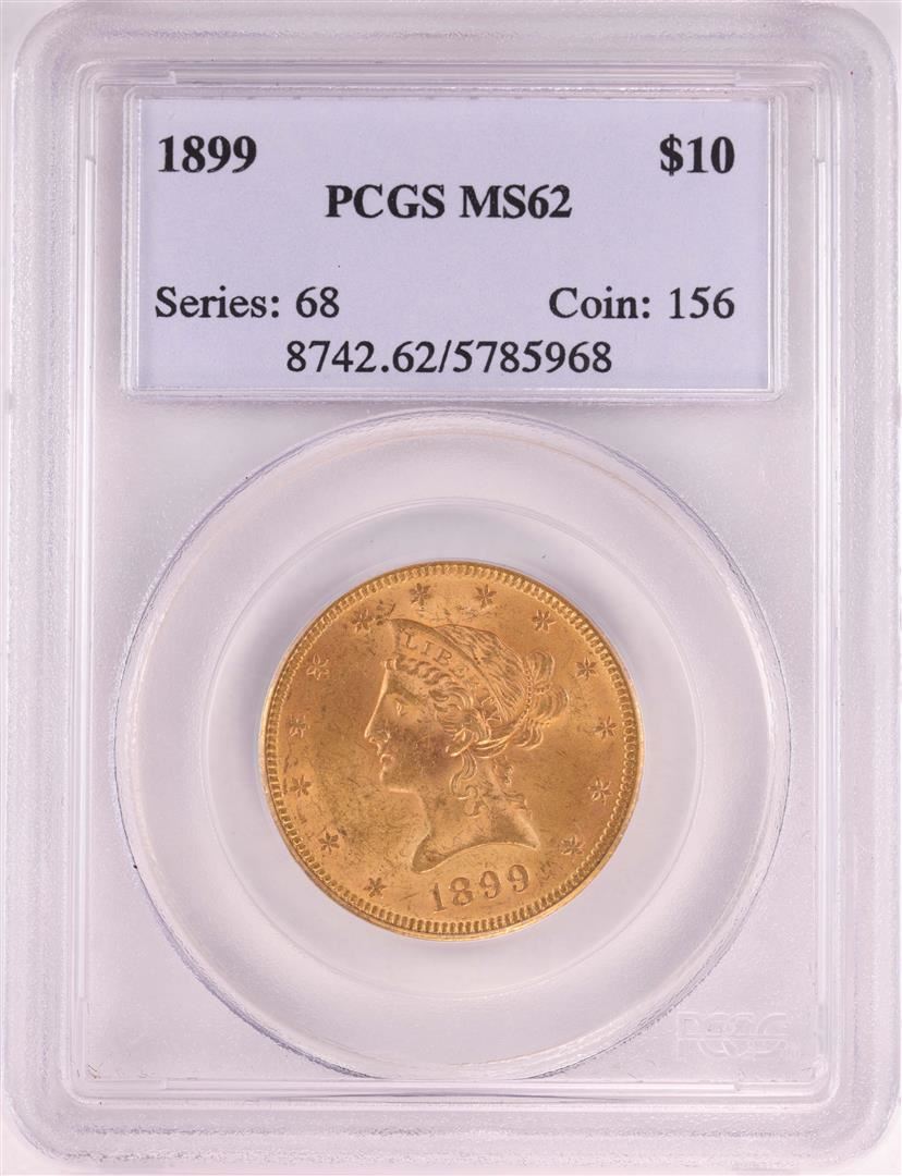 One 1899 $10 Liberty Head Eagle Coin PCGS MS62. PCGS Graded.