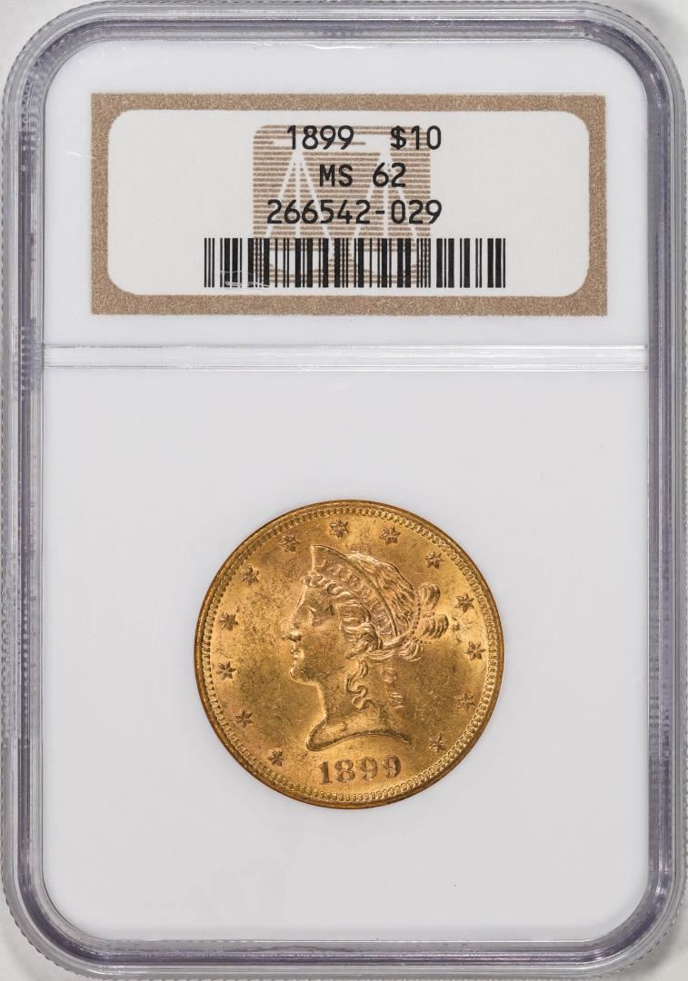 One 1899 $10 Liberty Head Eagle Gold Coin NGC MS62. NGC Certified.