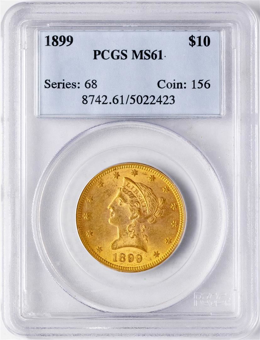 One 1899 $10 Liberty Head Eagle Gold Coin PCGS MS61. PCGS Graded.