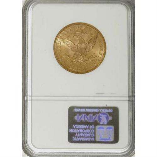 <B>1899 $10 MS62 NGC.</B></I> NGC Census: (5469/5204). PCGS Population (3700/1793). Mintage: 1,262,305. Numismedia Wsl. Price for NGC/PCGS coin in MS62: $395. (#8742)<BR><BR><B>Coin Engraver:</B> Christian Gobrecht<BR><BR><b>Shipping:</b> Coins & Currency (<a target="_blank" href="http://www.heritageauctions.com/common/shipping.php">view shipping information</a>)