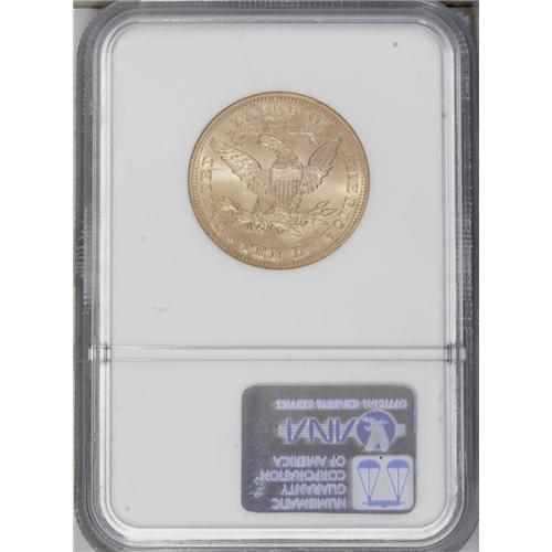 <B>1899<$10> MS63 NGC.</B></I> Ex: Bass. The well struck yellow-gold devices have luscious peach and orange accents. Highly lustrous, though the surfaces have light abrasions consistent with the grade.
