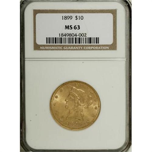 1899 $10 MS63 NGC. NGC Census: (4000/1153). PCGS P