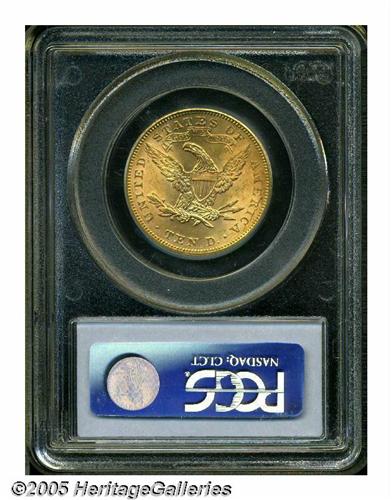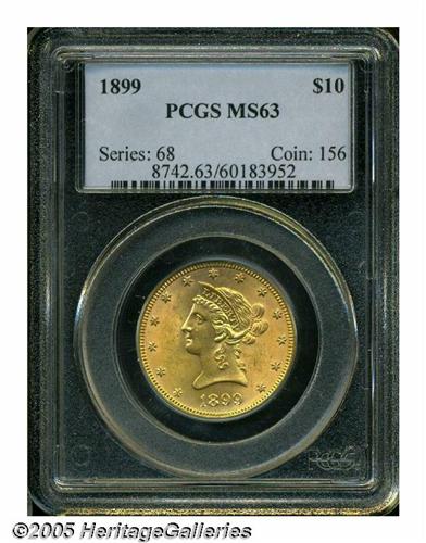 <B>1899<$10> MS63 PCGS.</B></I> Lustrous surfaces reveal apricot-gold patination with traces of light tan color. The design elements are well defined, except for a touch of softness in the hair over Liberty's ear. Some grade-limiting marks are visible on Liberty's cheek and neck, and in the left (facing) obverse field.