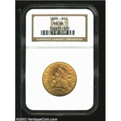 1899 $10 MS64 NGC. Sharply defined throughout with rich, satin-like luster. Important notice: We expect to be auctioning lots at the rate of 200-250 per hour. Sometimes eBay Premier live bid software cannot keep up with that pace, so we strongly recommend that you place a realistic proxy bid now as insurance to avoid disappointment. Also please note that all Heritage/CAA lots purchased through eBay Premier carry a 20% Buyer's Premium. Please make sure you read the Terms and Conditions.