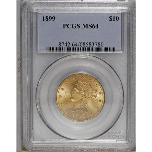 1899 $10 MS64 PCGS. Dynamic luster illuminates this cl