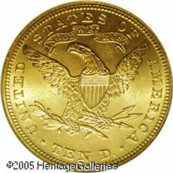 <B>1899 $10 MS65 NGC.</B></I> While the striking details are sharply struck throughout and there are no objectionable (or noticeable) marks on either side, what really sets this coin apart is the subtle, lightly variegated colored mint frost. Completely original and untampered, this is a splendid example of this popular 19th century issue. Lot:8818
