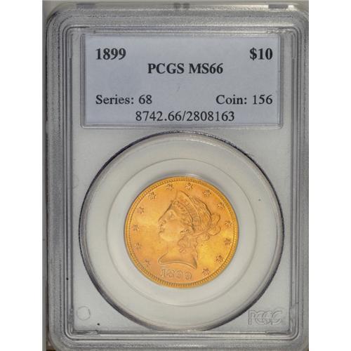 1899 $10 MS66 PCGS. Both sides of this desirable, sati